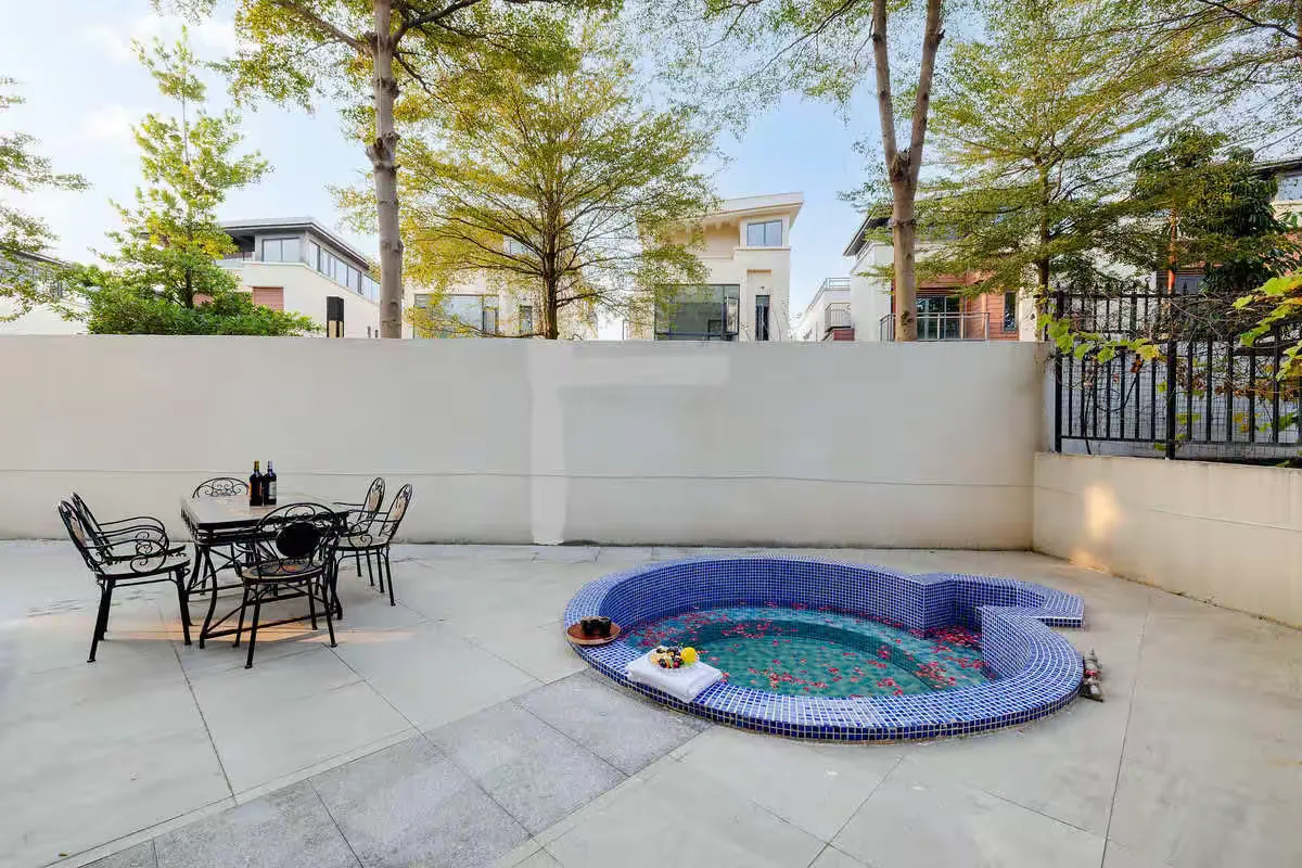 1、独立私家温泉泡池、入住别墅免费配送一池温泉水(不恒温、不长流水)